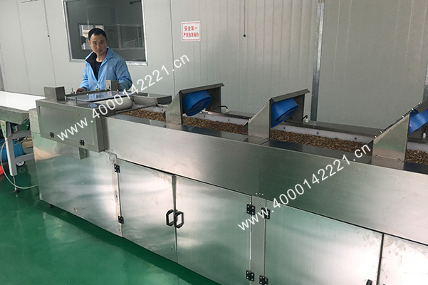 这个案例是温州客户生产坚果棒的一个例子,他们够买了整一条瓜子糖的生产线,基本配置为:SMCF-421切块机 + SMZL-110整理机 + SMZ-420枕式包装机,全程实现PLC电控系统控制,需要的人工也非常的少,只需要两三个人工即可负责整一条生产线的生产。这套设备同样可以生产:切糕,花生糖,瓜子糖,谷物棒等产品
