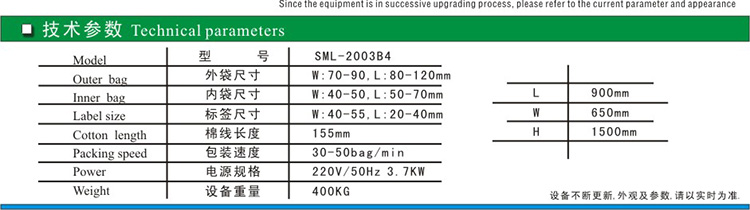 SML-200是袋泡茶专用的包装机(茶叶包装机,茶叶自动包装机),能实现内袋,外袋,标签,棉线一次性完成,人手不用接触就自动完成了。机器自动化非常高,计量准确。您也可以根据需求,单独选择内袋的包装。